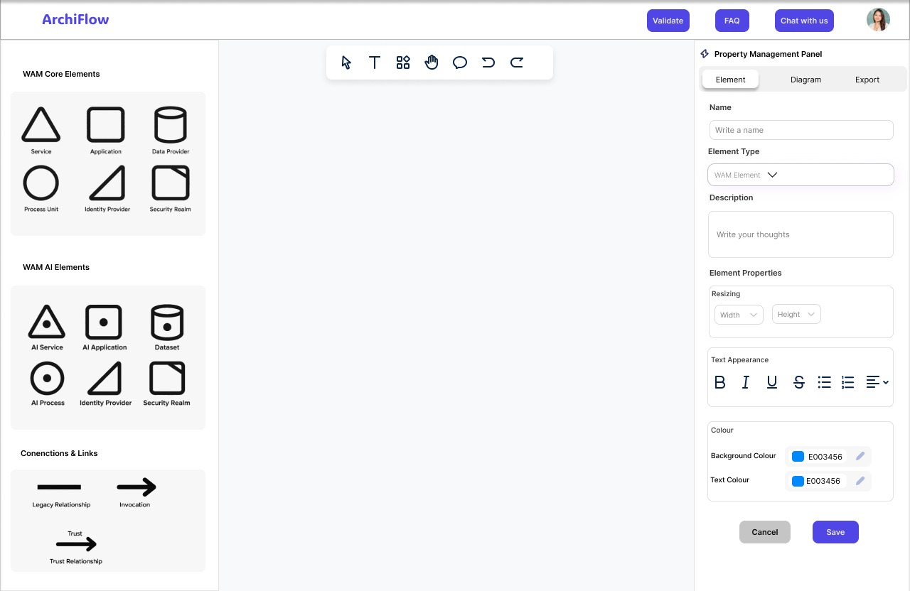 Our flagship product, the Webcomposition Architecture Model (WAM) empowers teams to visually model, describe, and refine system architectures through an intuitive AI-assisted platform